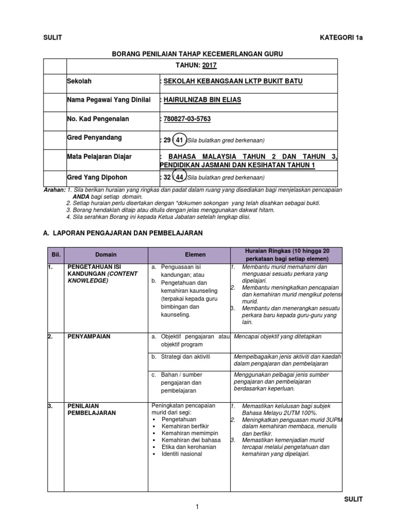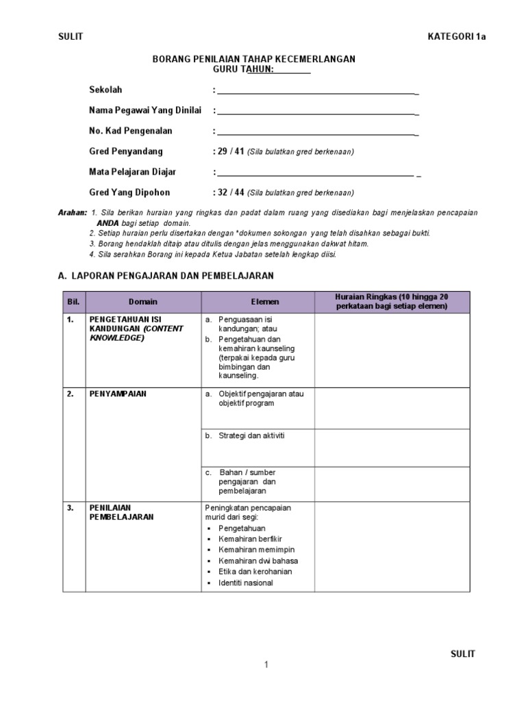 Doc Borang Penilaian Tahap Kecemerlangan Guru Borang Kategori 1b Guru Nor Asmah Awang Academia Edu